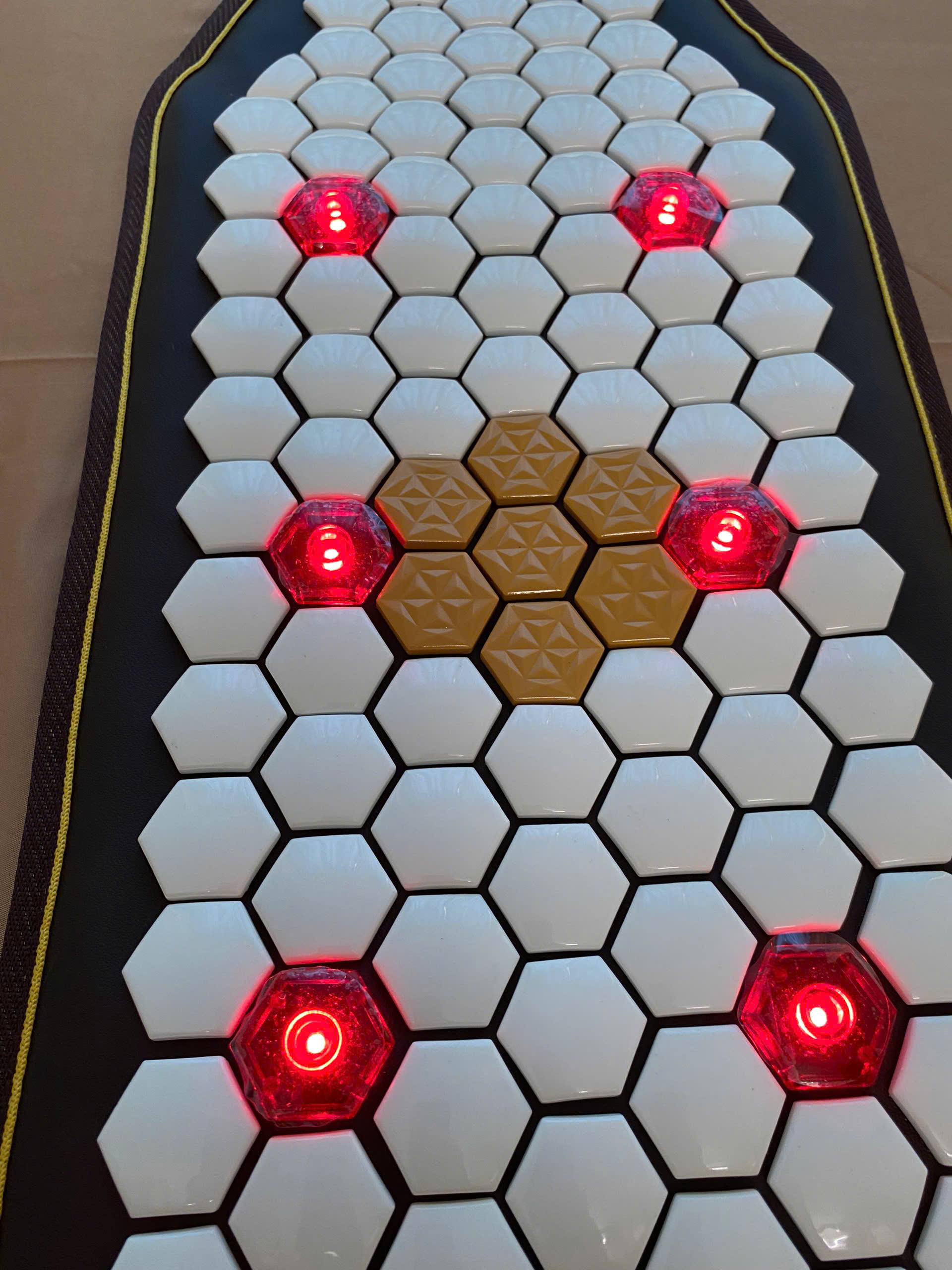 - Đá: 152 viên đá lục giác trắng bóng tourmaline Hygiea cao cấp và 6 đèn laze hồng ngoại.