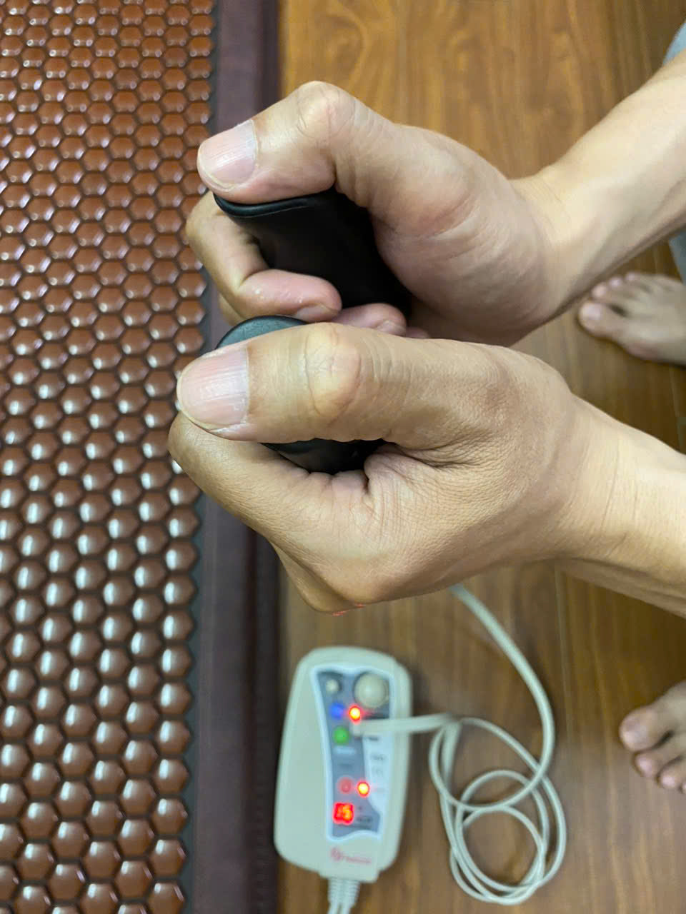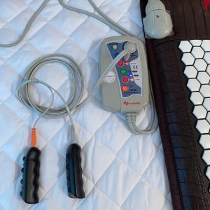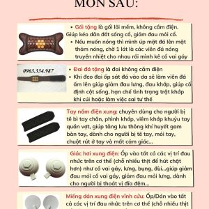 Đai đá không nhiệt là đai không cắm điện c ạ. Kích thước 18*140cm. Khi đeo đai ốp sát vào da sẽ làm viên đá nóng lên. Chính vì vậy đai có tác dụng giảm đau lưng, đau khớp c nha. Đai này giúp giảm đau lưng xương khớp, giảm béo c ạ, mình có thể đeo khi làm việc, đi chơi…giúp cố định cột sống, hạn chế tình trạng trật khớp khi cúi hoặc làm việc sai tư thế. - Cặp xung điện có dẫn dẫn kèm theo kết hợp với bảng điều khiển của thảm