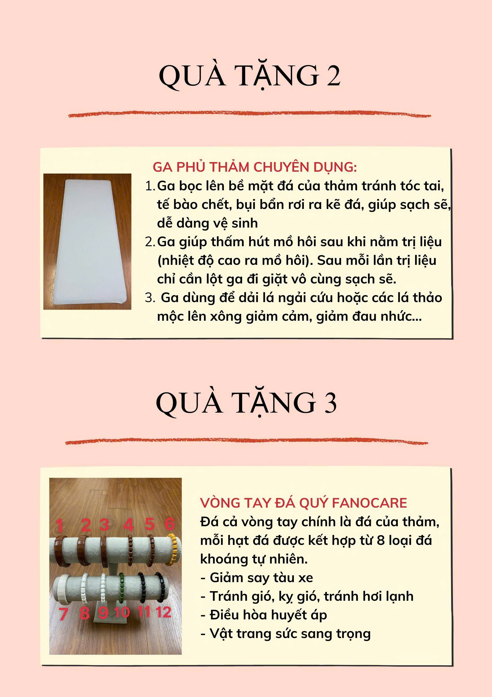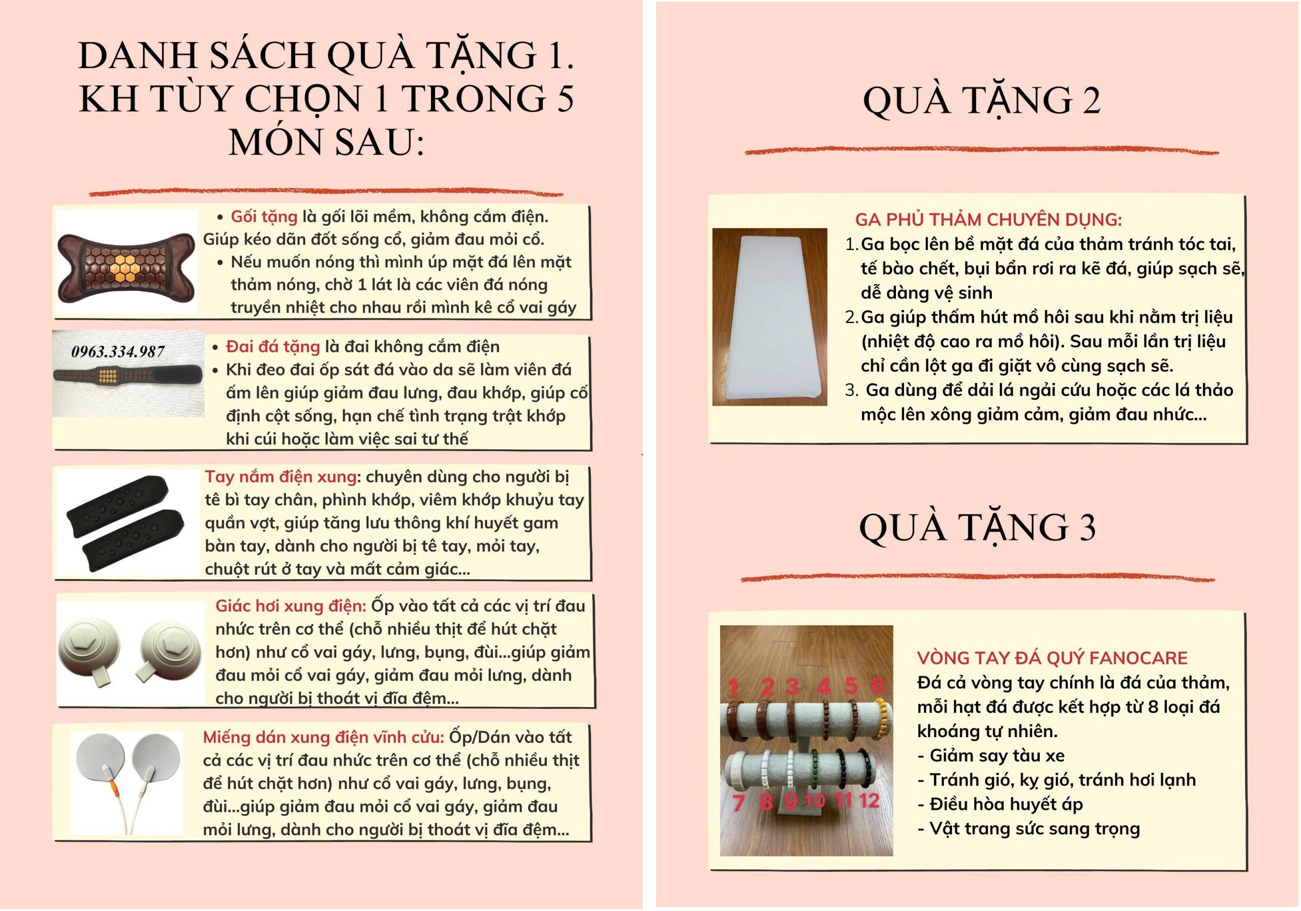 Hiện thảm đơn đá nóng Fanocare đang được tặng kèm các món chi tiết như sau: